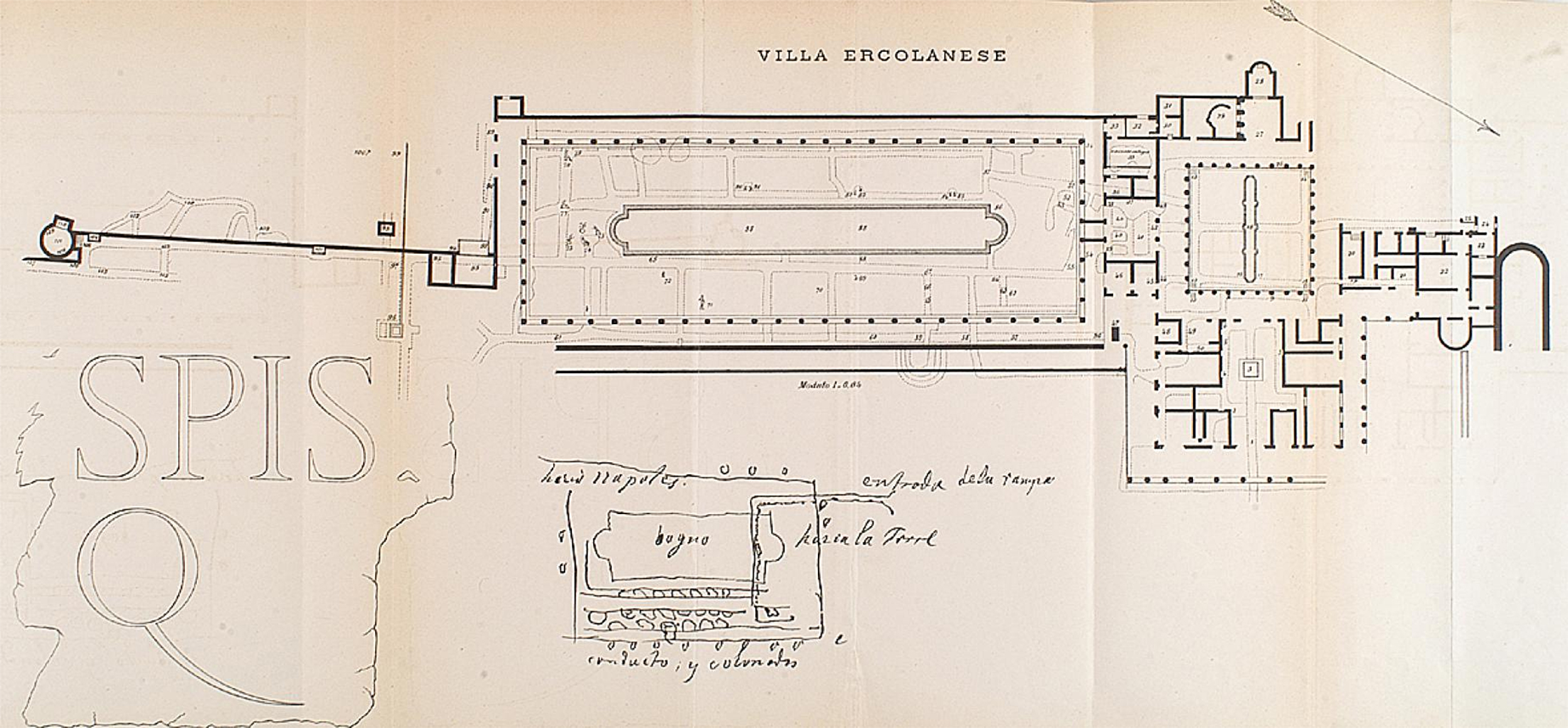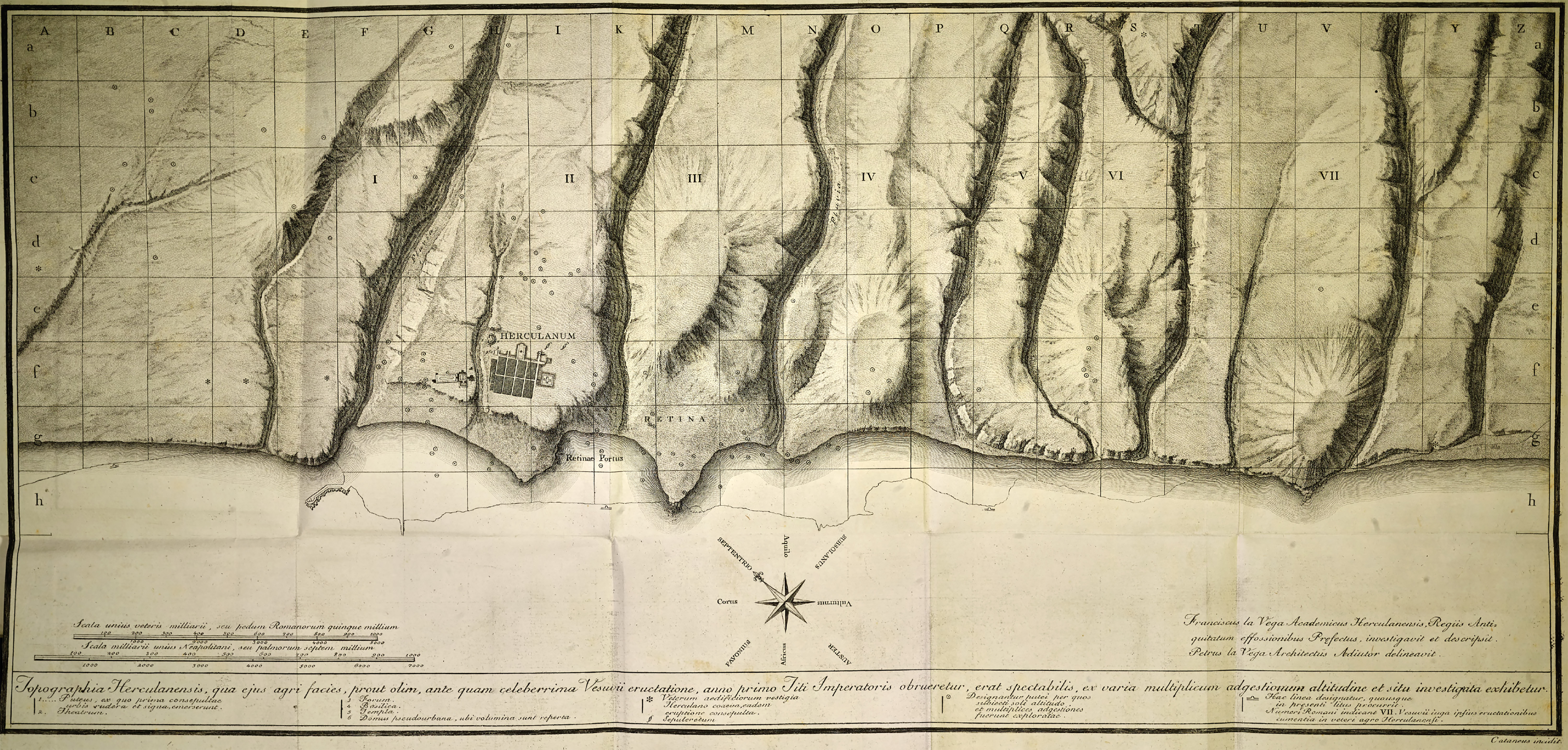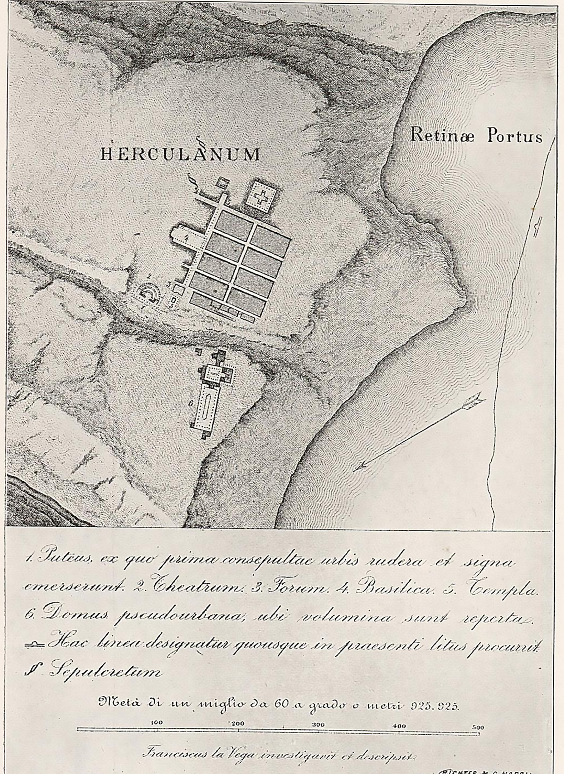 Plan of Herculaneum area by P. and F. La Vega, published in 1797 by C. M. Rosini in Dissertationis Isagogicae ad Hercvlanensivm Volvminvm Explanationem: Pars Prima.