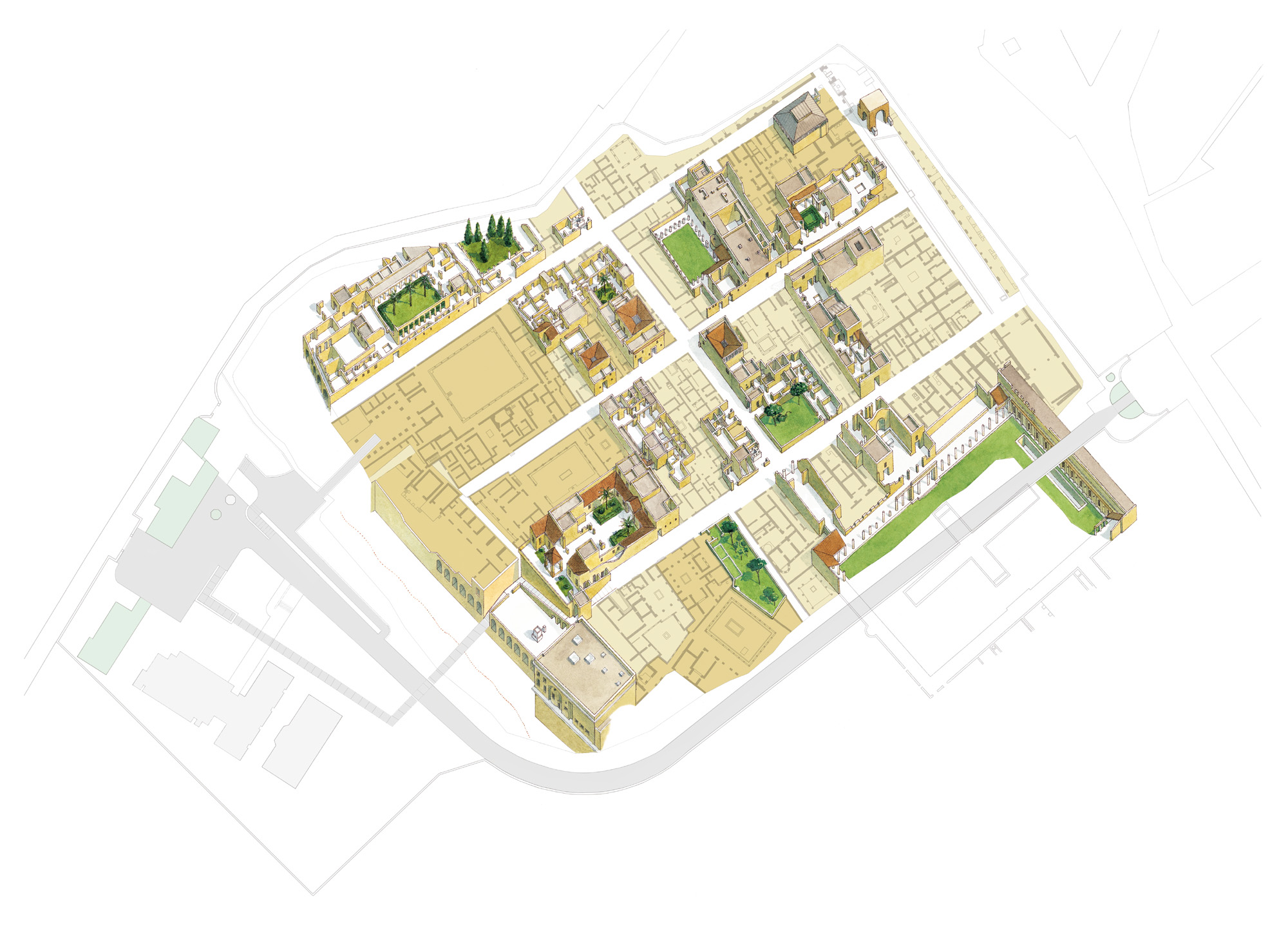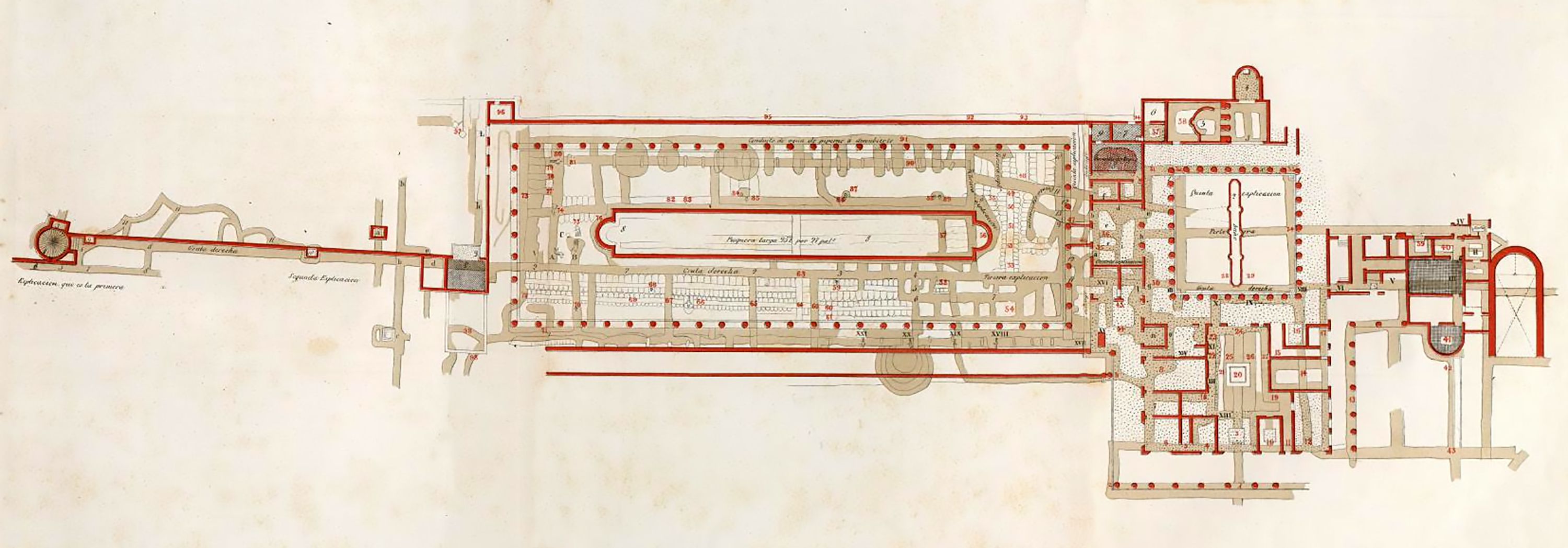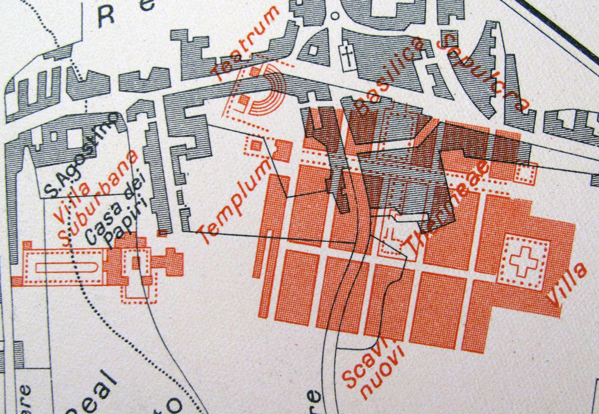 Plan of Herculaneum area by P. and F. La Vega, published in 1797 by C. M. Rosini in Dissertationis Isagogicae ad Hercvlanensivm Volvminvm Explanationem: Pars Prima.