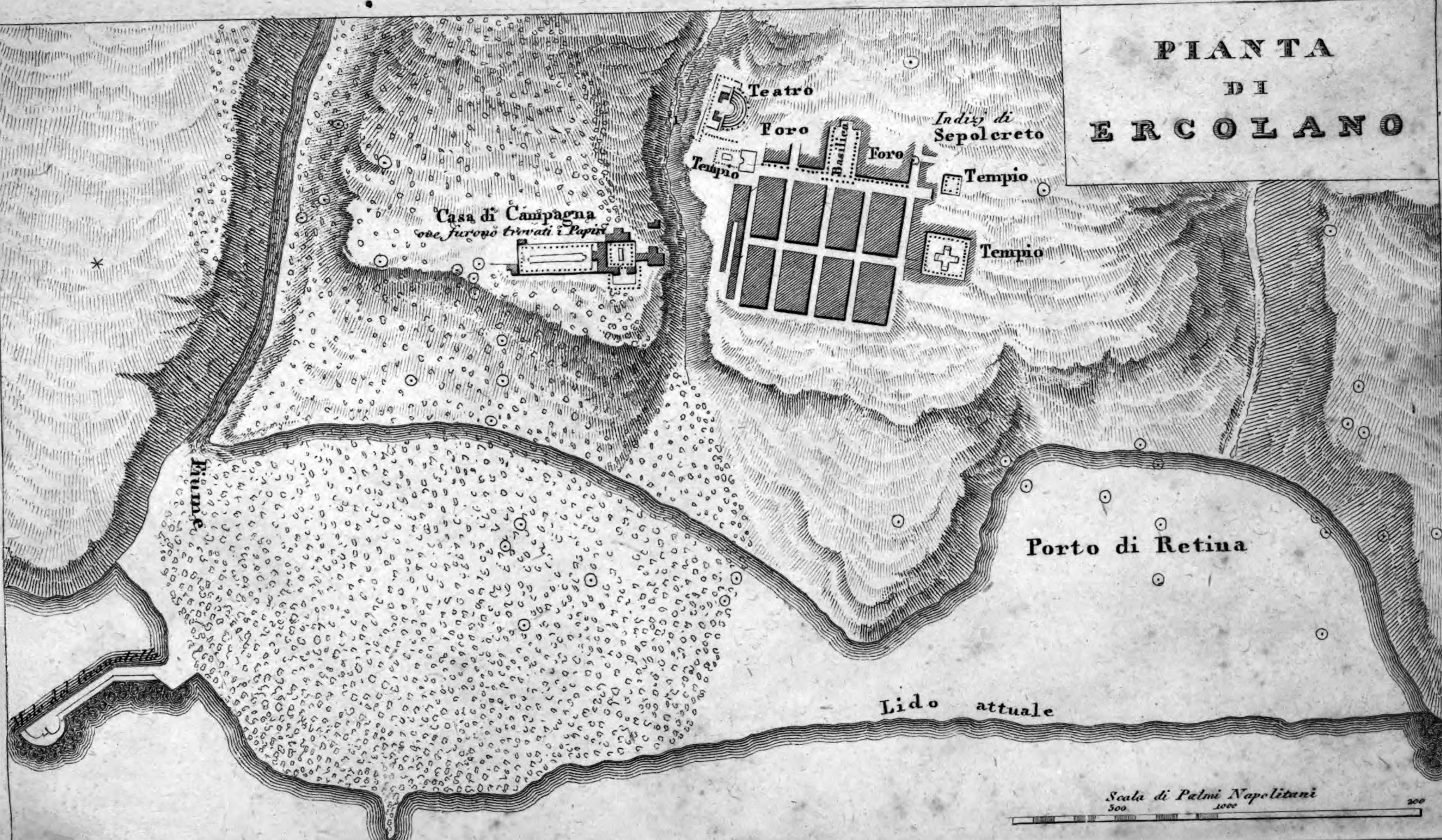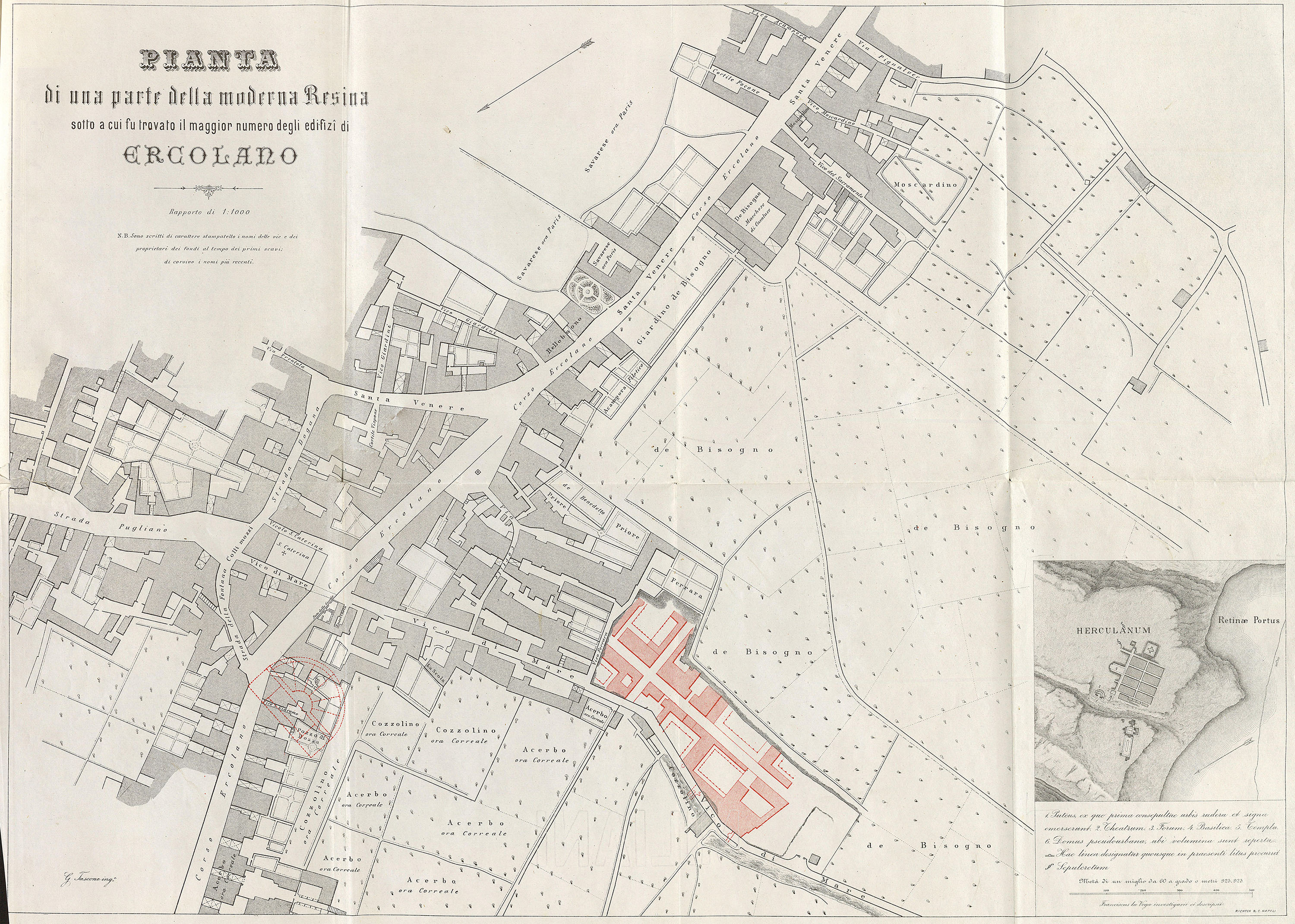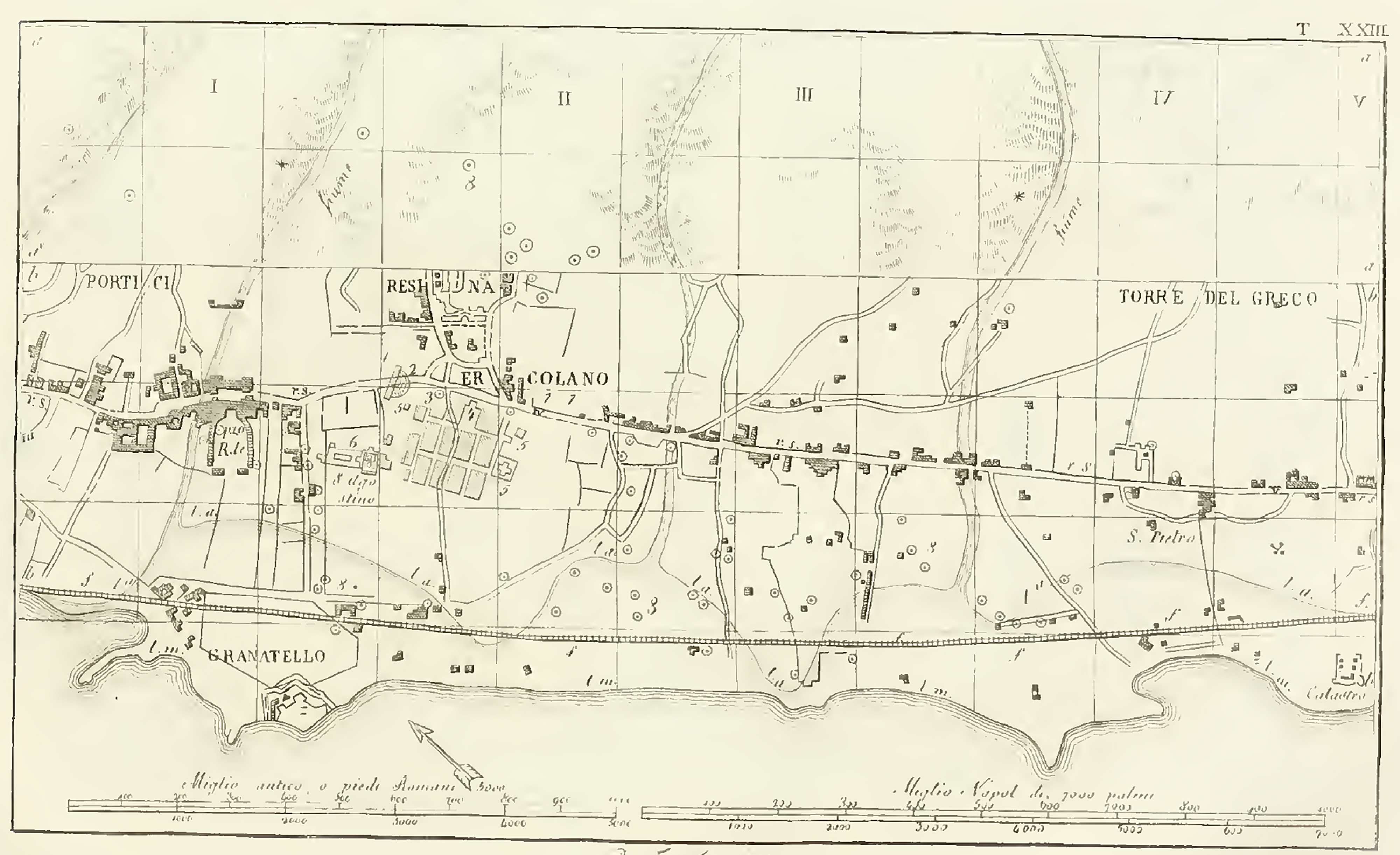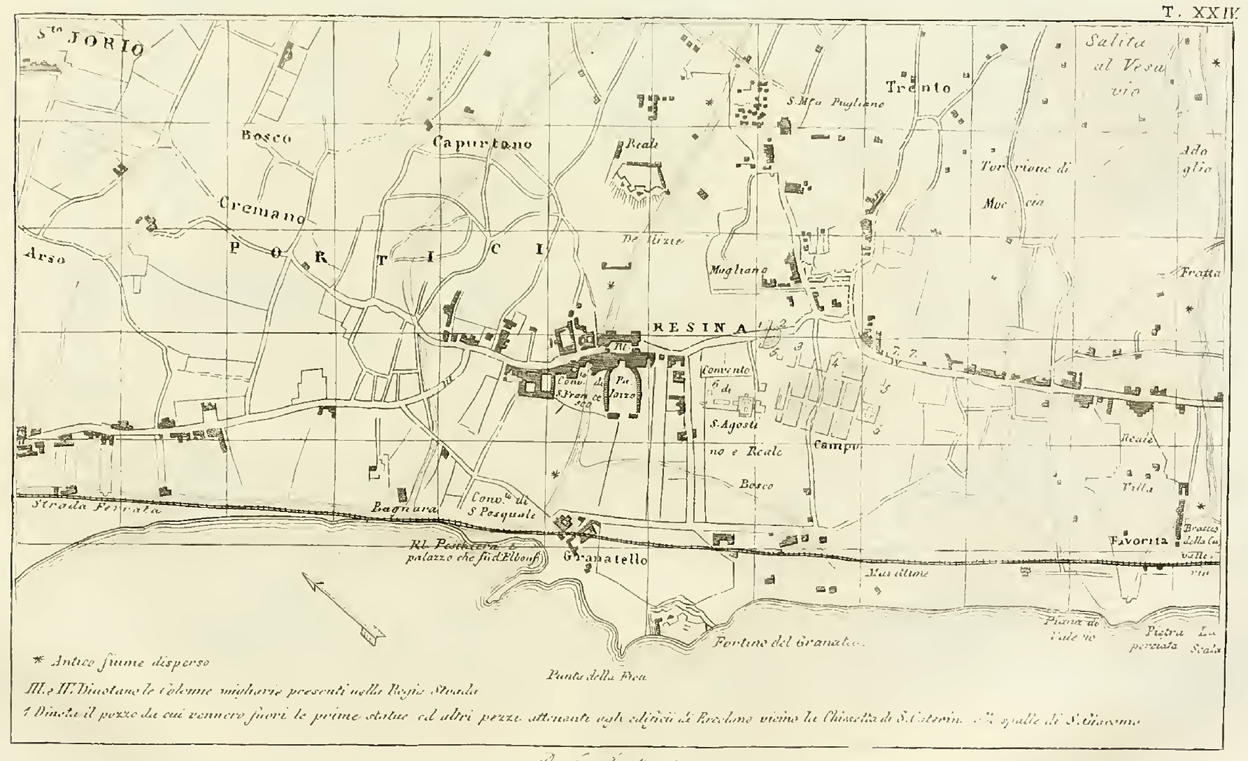 Plan of Herculaneum, Resina, San Jorio (San Giorgio a Cremano in ancient literature) and Granatello.