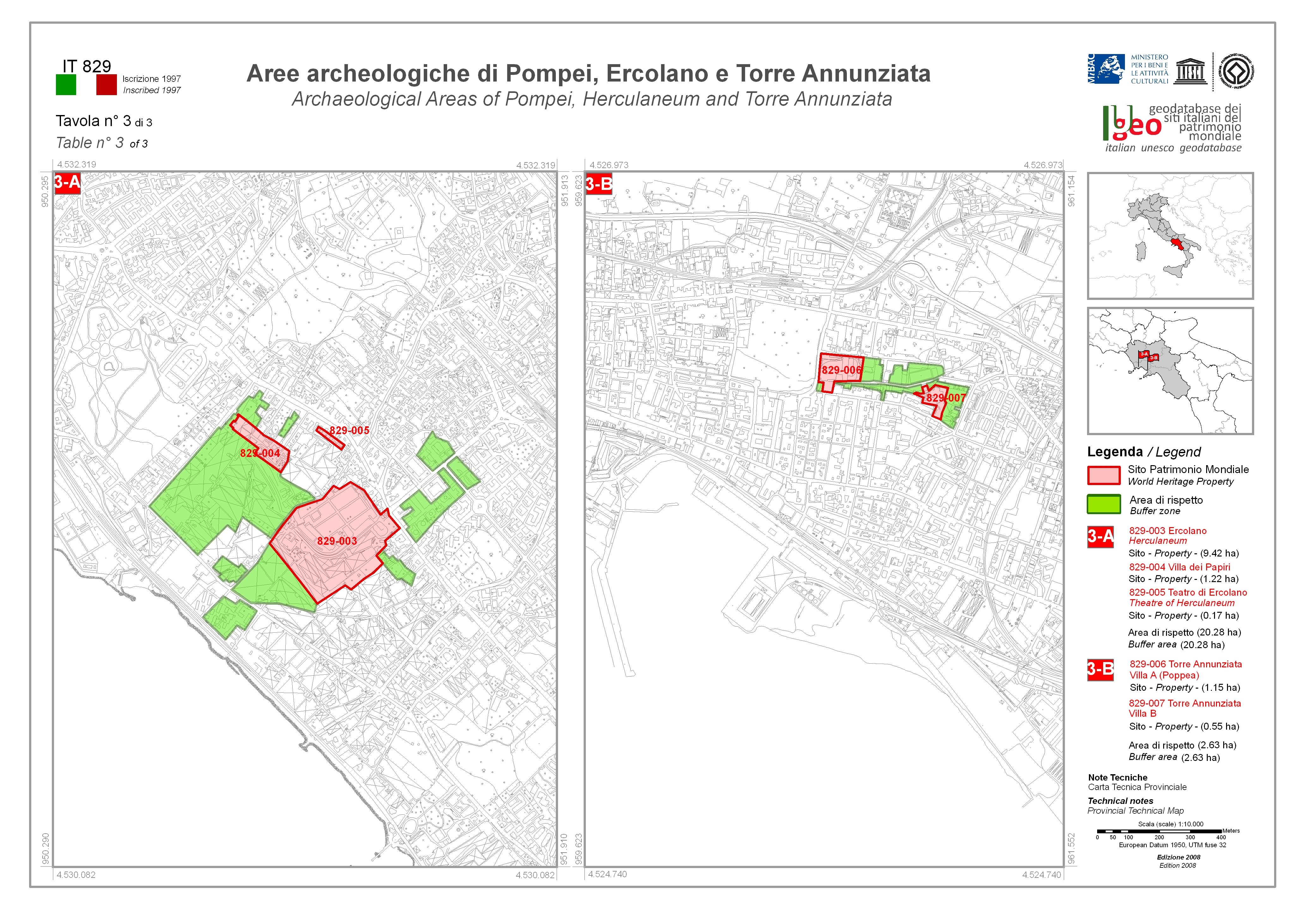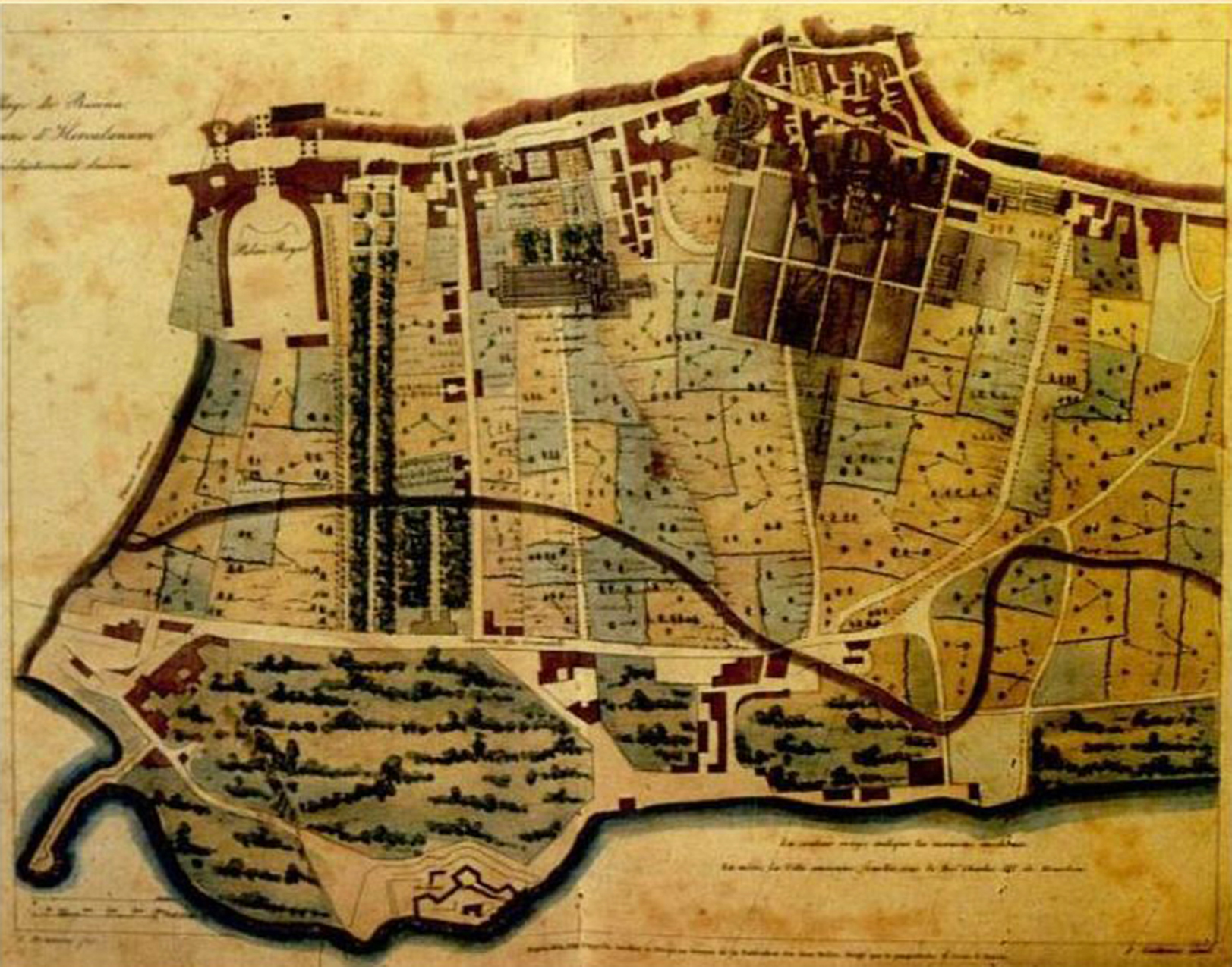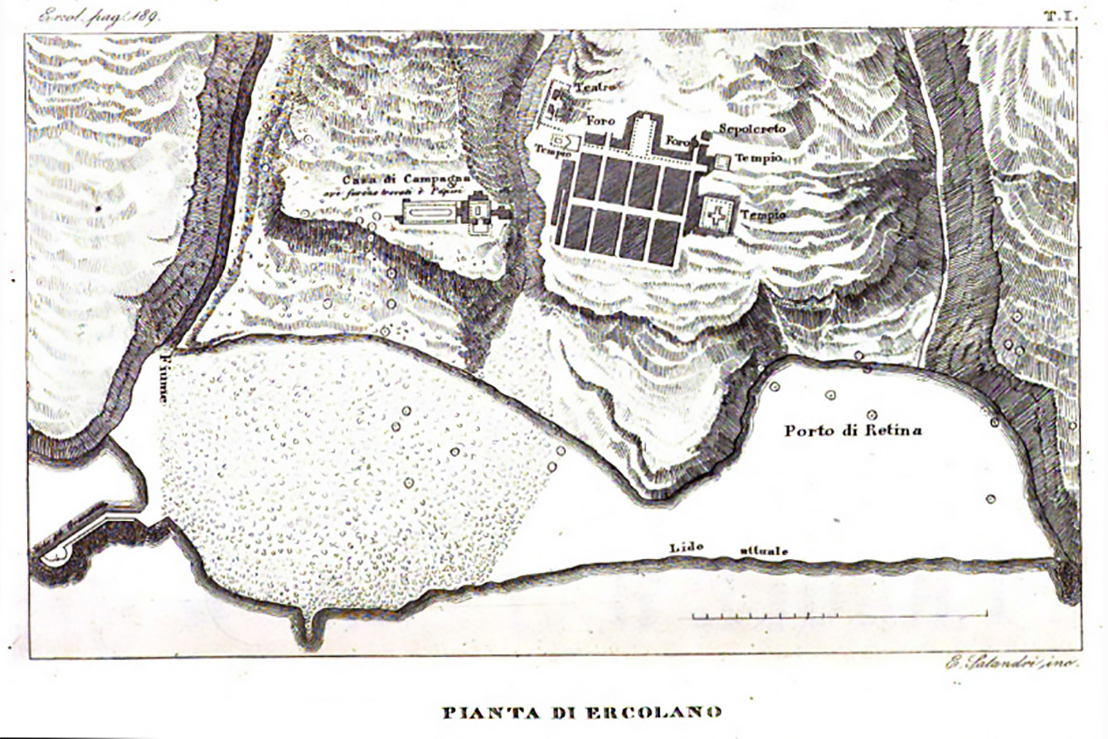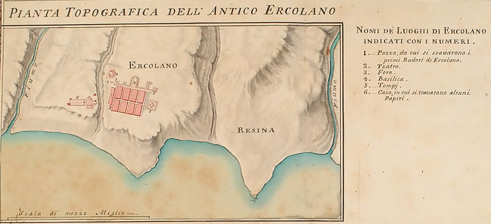 Plan of Herculaneum, Resina, San Jorio (San Giorgio a Cremano in ancient literature) and Granatello.