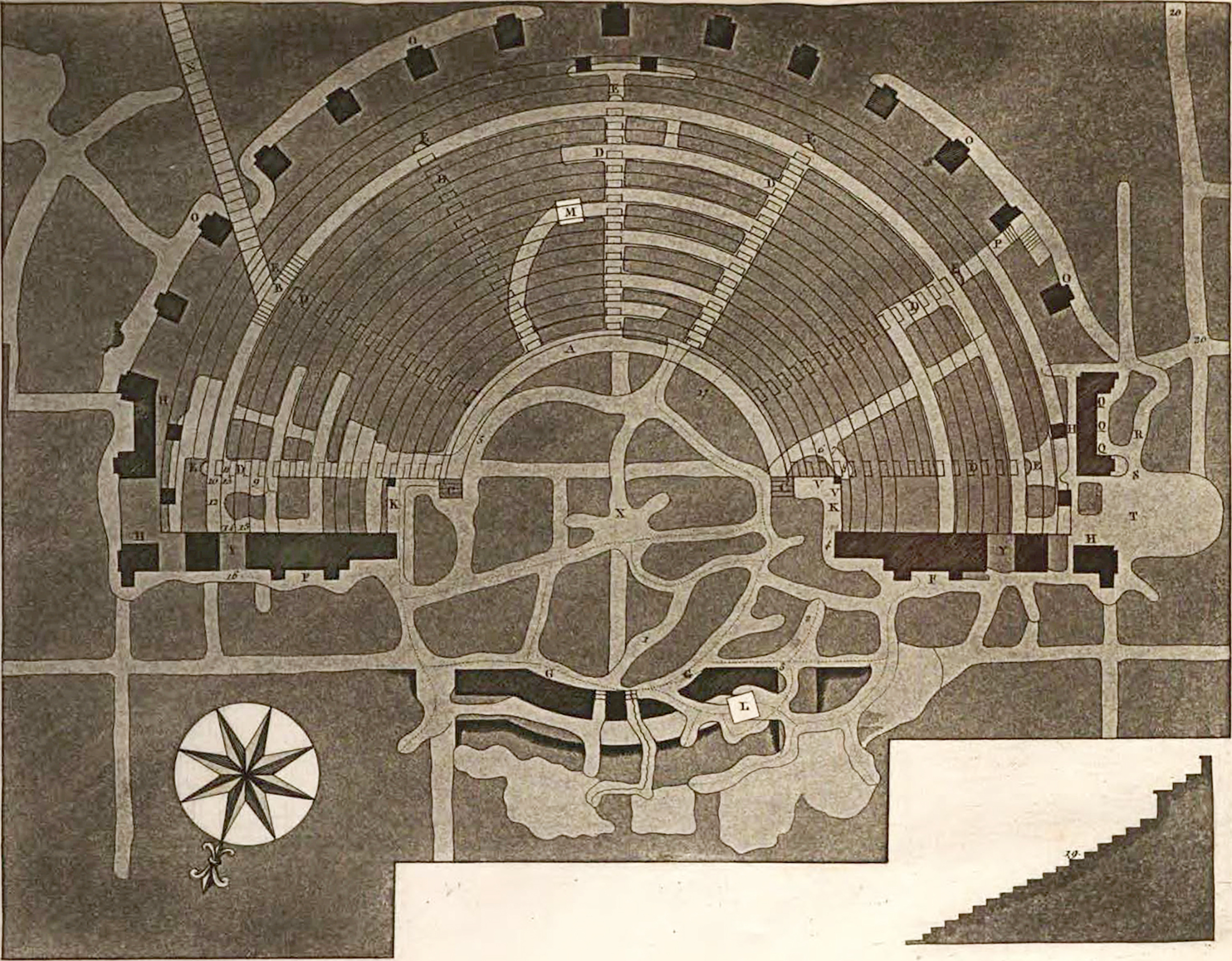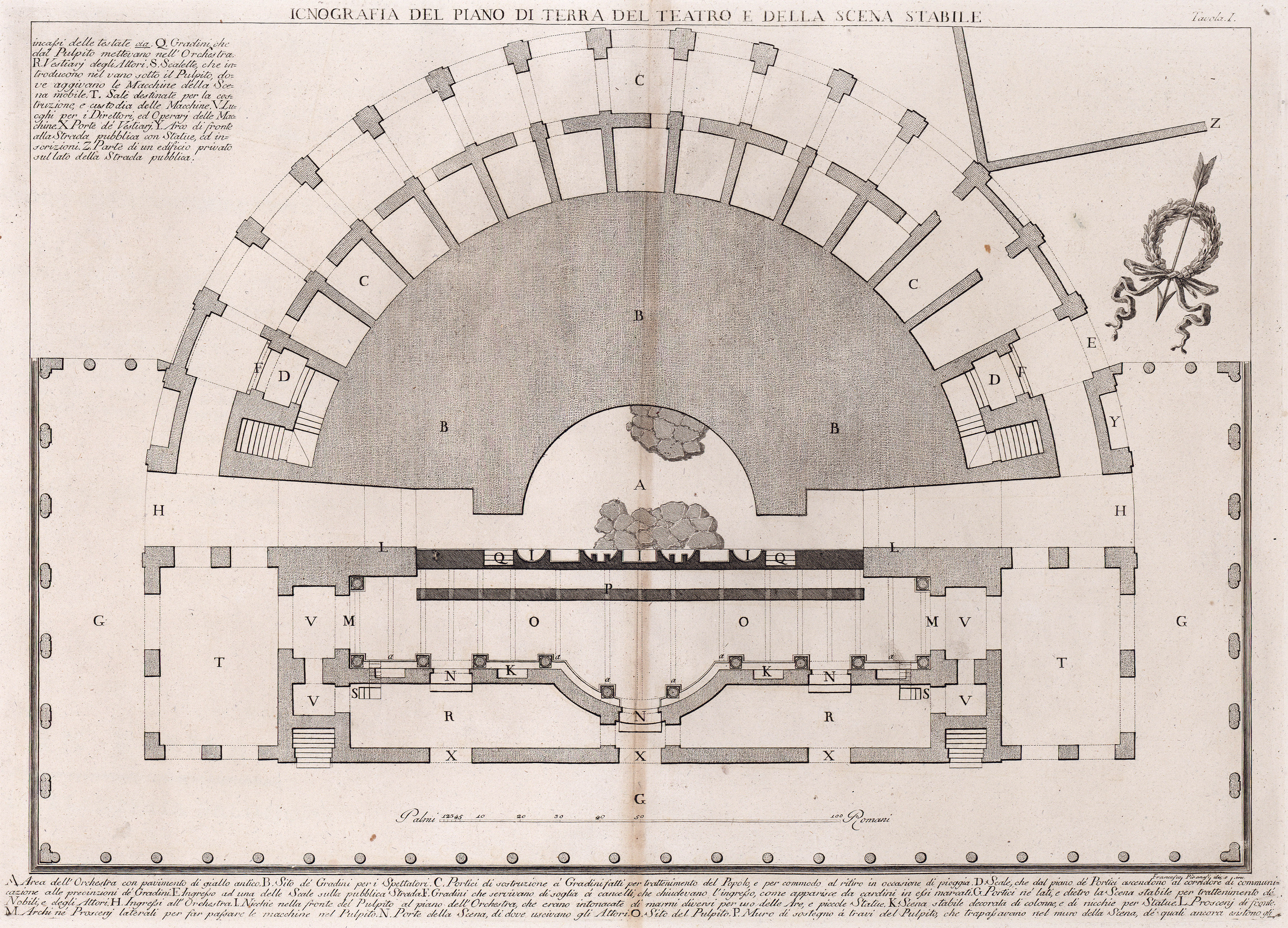 Plan of the theatre at Herculaneum, first of three by Francesco Piranesi published in 1783 in Teatro di Ercolano, Tav I.