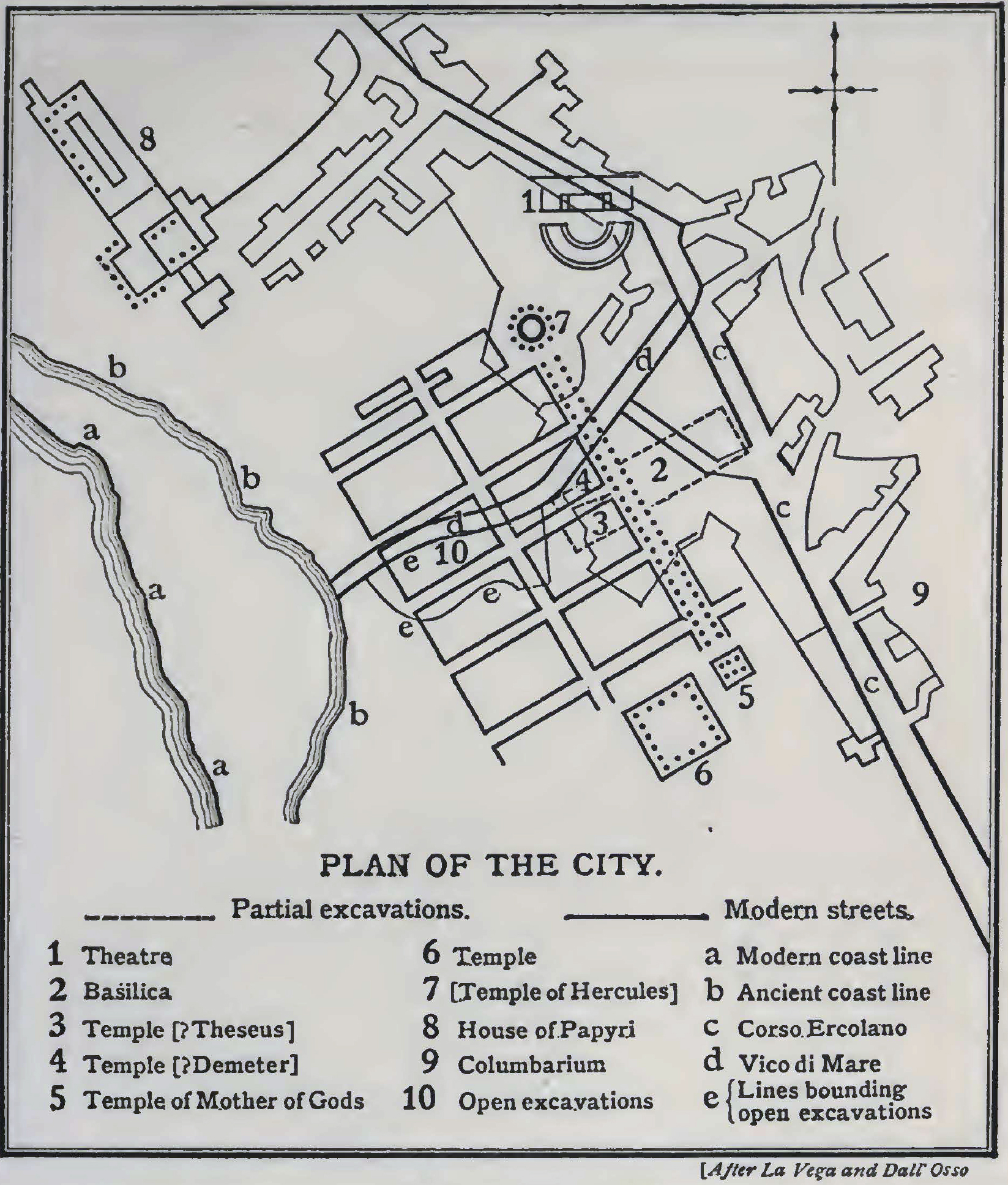 Plan of the Herculaneum "after La Vega and Dall'Osso" by Ethel Ross Barker in Buried Herculaneum 1908, plan 2.