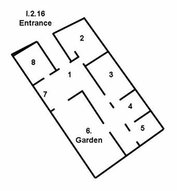The room numbers are those referred to on the pompeiiinpictures pages for I.2.16.