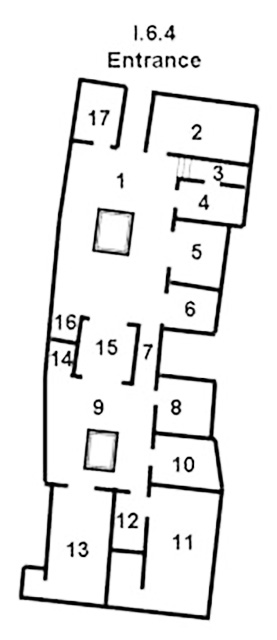 The room numbers are those referred to on the pompeiiinpictures pages for I.6.4.