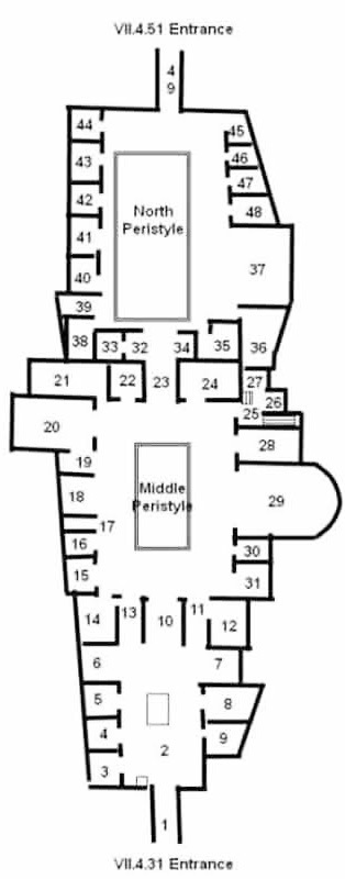 Click on the pompeiiinpictures plan or press the links below to see pictures for that part of VII.4.31/51.