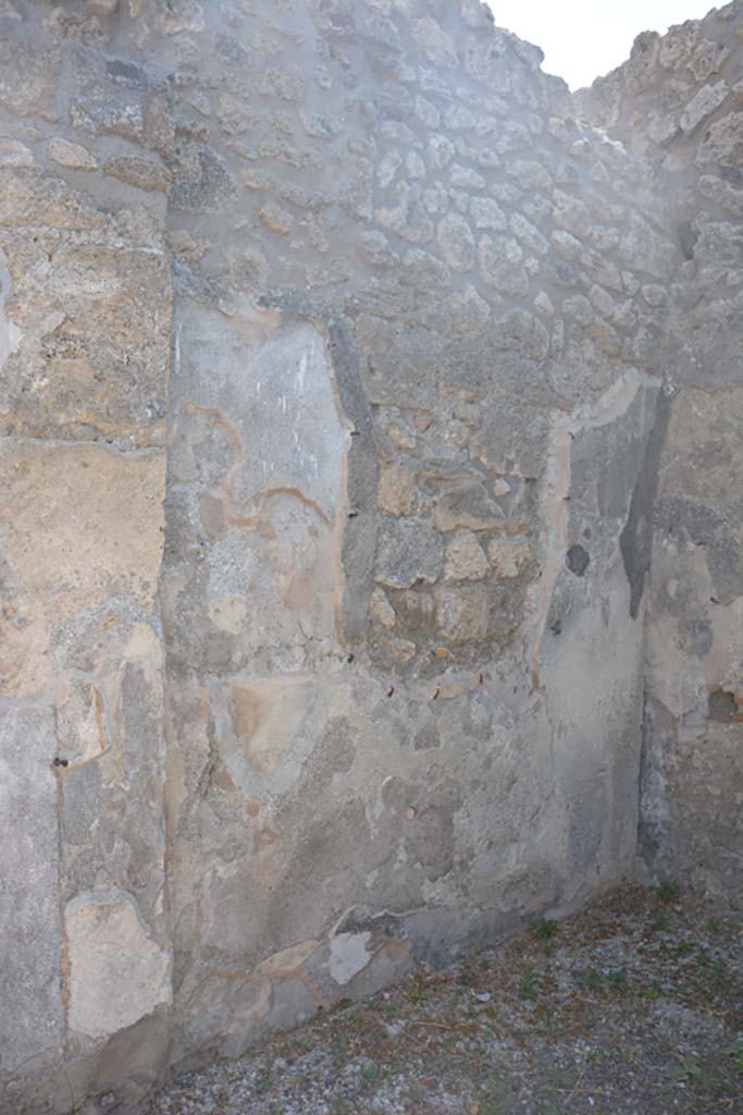 Pompeii. July 2017. East wall of room with open doorway in centre of south wall